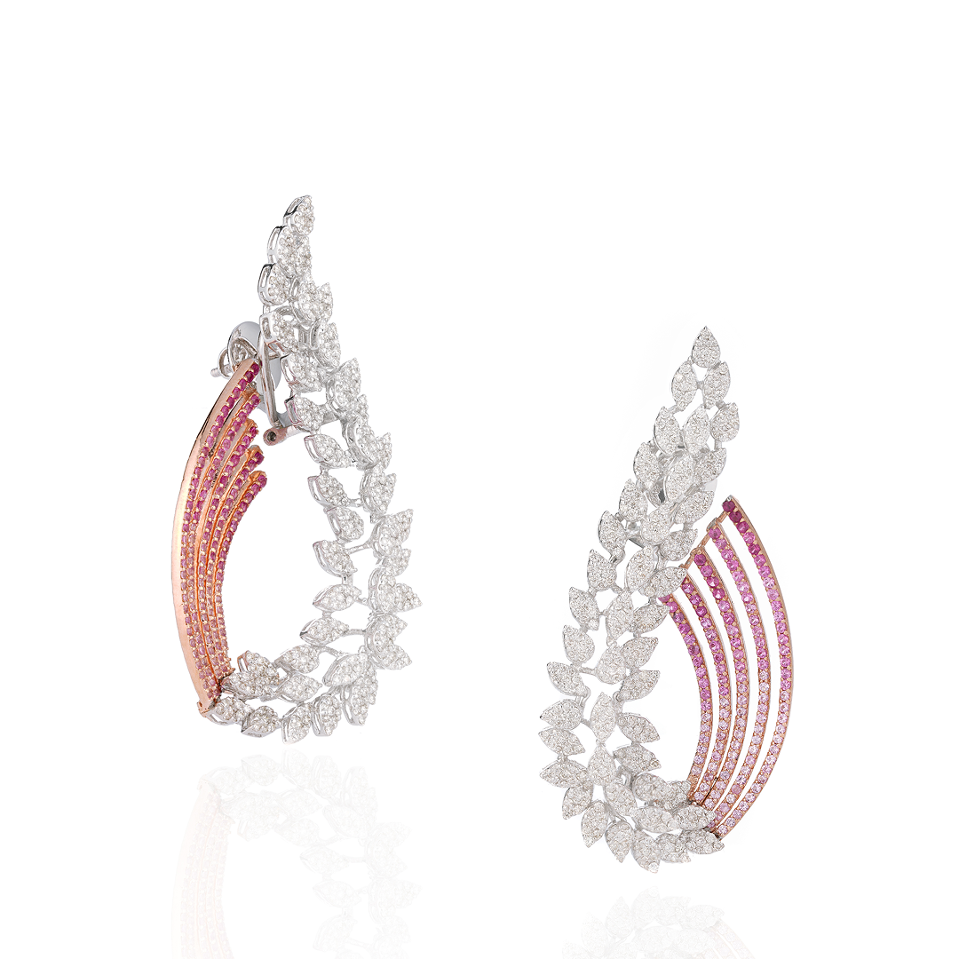 Boldly unbalanced, endlessly chic. Dual Drama earrings play with contrast one side sparkles with a cascade of fancy-cut diamonds, while the other stuns in smooth, sculptural gold. Designed to defy symmetry, these statement danglers bring artful edge to high luxury. One piece, two personalities.
