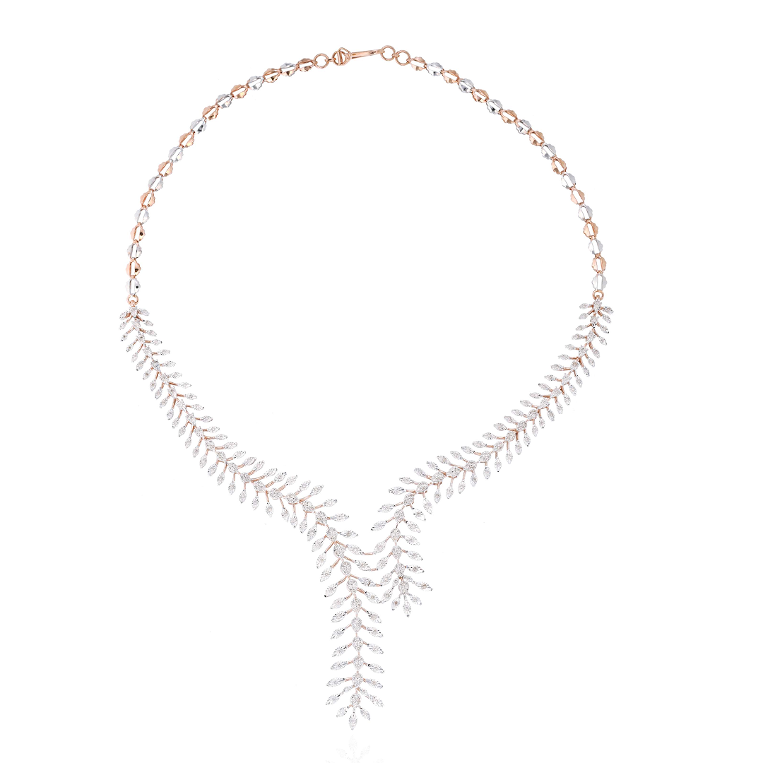 "The Knotique, Fluid, sculptural, and irresistibly modern the necklace draws inspiration from the elegant knot, weaving natural diamonds into a sleek, wrapped silhouette. With its graceful curves and seamless flow, this necklace evokes the movement of silk and the strength of design. Bold without being loud, it's the kind of luxury that speaks in quiet brilliance."