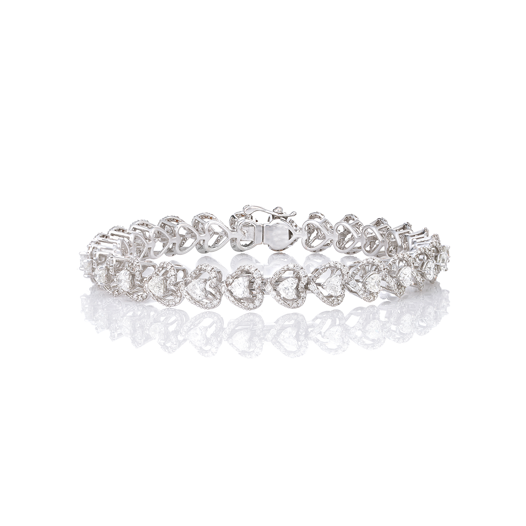 "The Queen Of Hearts, Crafted in graceful arcs and adorned with heart-shaped white diamonds, the pair celebrate love in its purest form. Delicate yet dazzling, each bangle wraps the wrist with timeless elegance and a touch of sparkle perfect for moments that deserve to be remembered."
